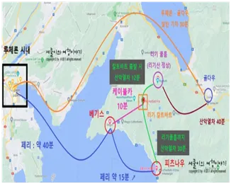 (고속페리 약 1시간 소요)