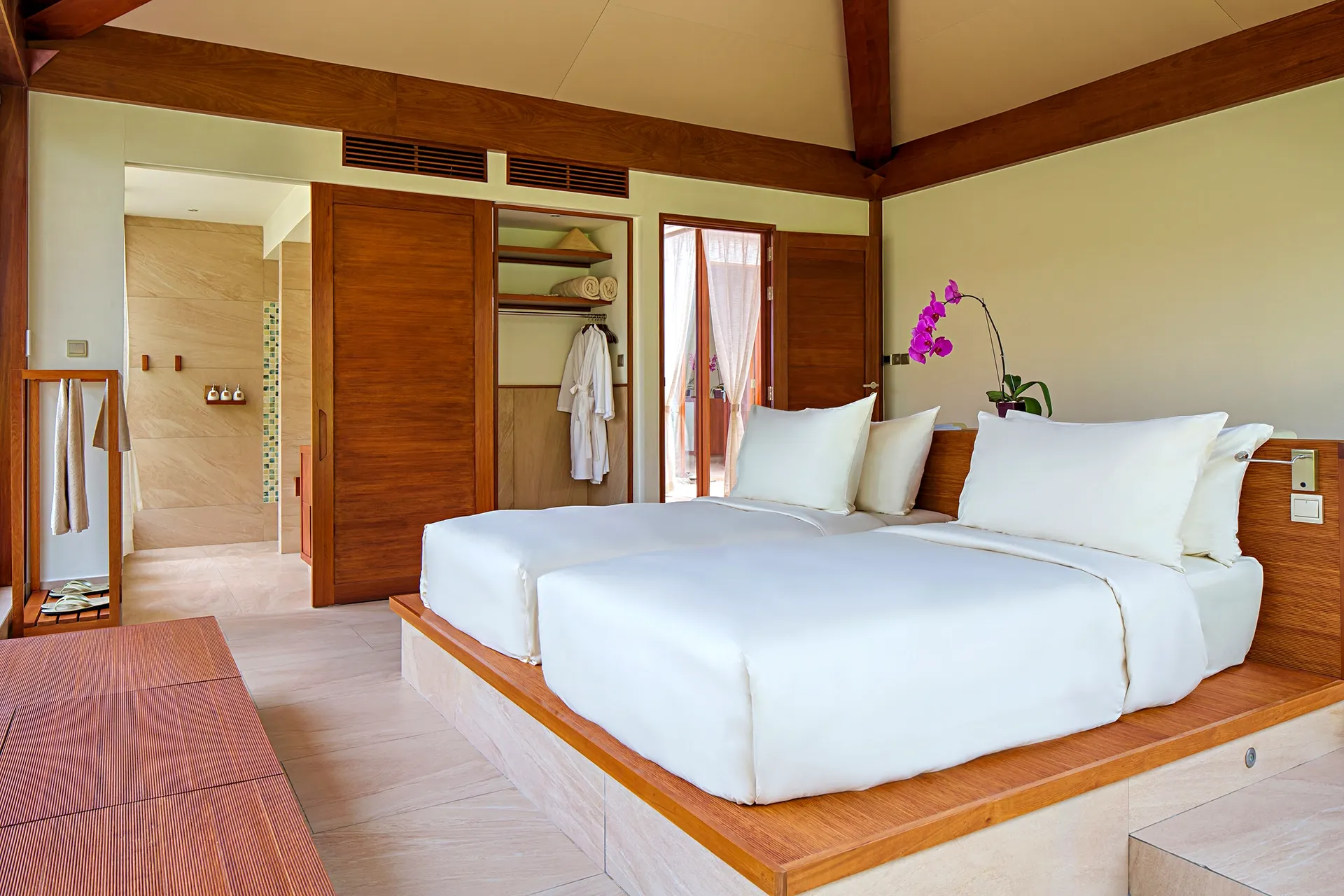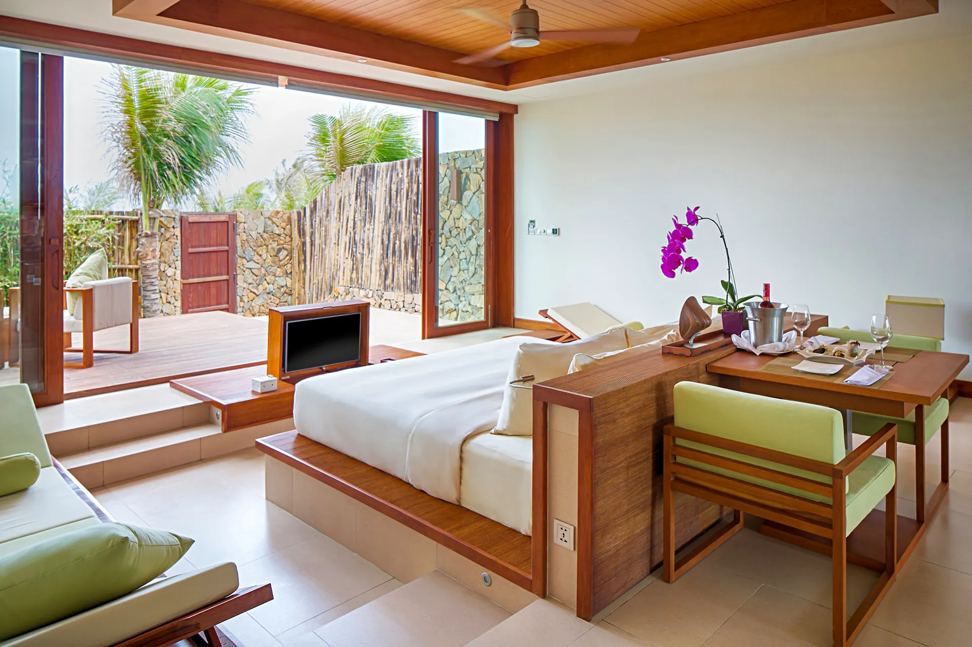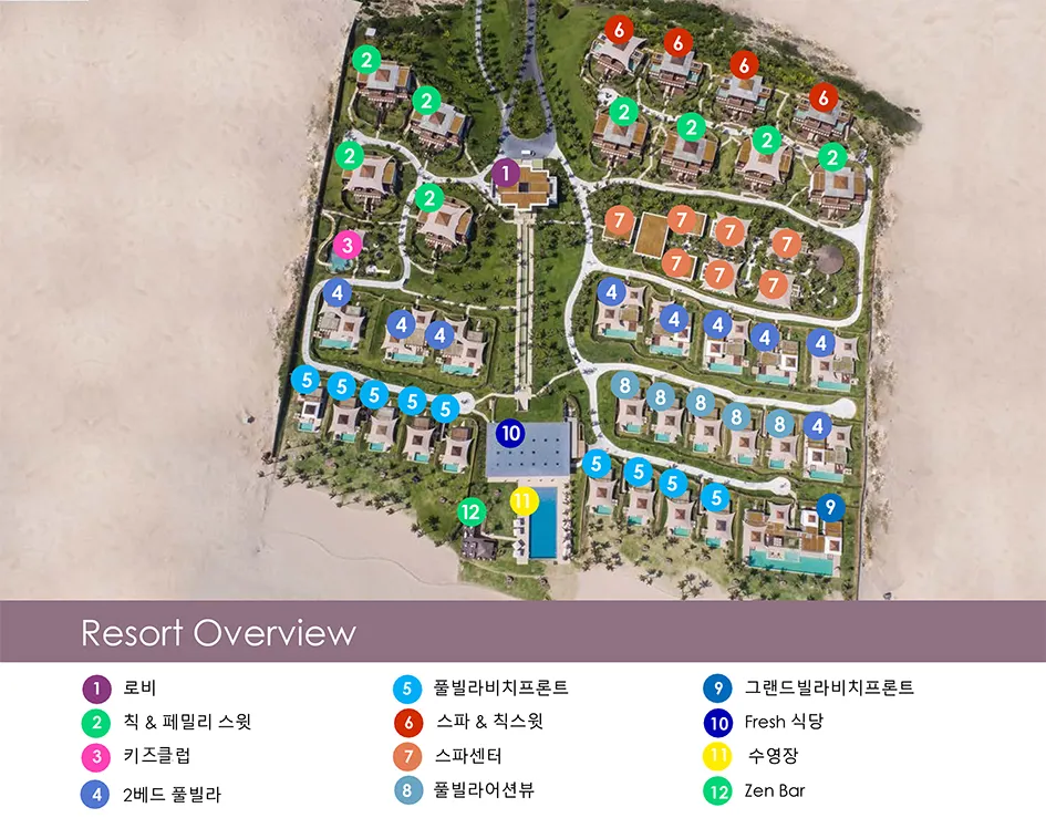 동양의 나폴리라 불리우는 베트남 최고의 휴양지인 나트랑은 베트남 중남부 동해안에 위치해 있으며, 와이키키 비치를 연상시키는 10Km에 이르는 천연의 백사장과 아름다운 에메랄드 빛 바다가 있는 완벽한 휴양지 중 한 곳입니다. 과거에는 나트랑 시티센터(나짱센터)인근으로 다양한 호텔들이 운영중이었고, 리조트들은 시내와 조금 떨어져 있거나 스피드 보트를 타고 들어가는 섬에 위치한 경우들이 많았습니다. 하지만 깜란 국제공항에 새롭게 오픈하면서 조성이 되고 있는 Cam Hải Đông 지역은 나트랑에서도 가장 아름다운 바다가 있는 곳으로 최근 이곳에 휴양형 리조트들이 계속해서 오픈을 하고 있습니다. 세레니티 그룹의 <퓨젼 리조트 깜란>은 스파인클루시브컨셉 풀빌라 리조트를 지향하고 있으며, 모던한 스타일의 비치 리조트로 커플이나 가족들이 한적하여 여행을 즐기기 용이합니다. 최대 4베드룸 풀빌라까지 구성하고 있고, 성인을 기준으로 1일 2개의 스파 프로그램이 포함되어 있는게 특징입니다.
