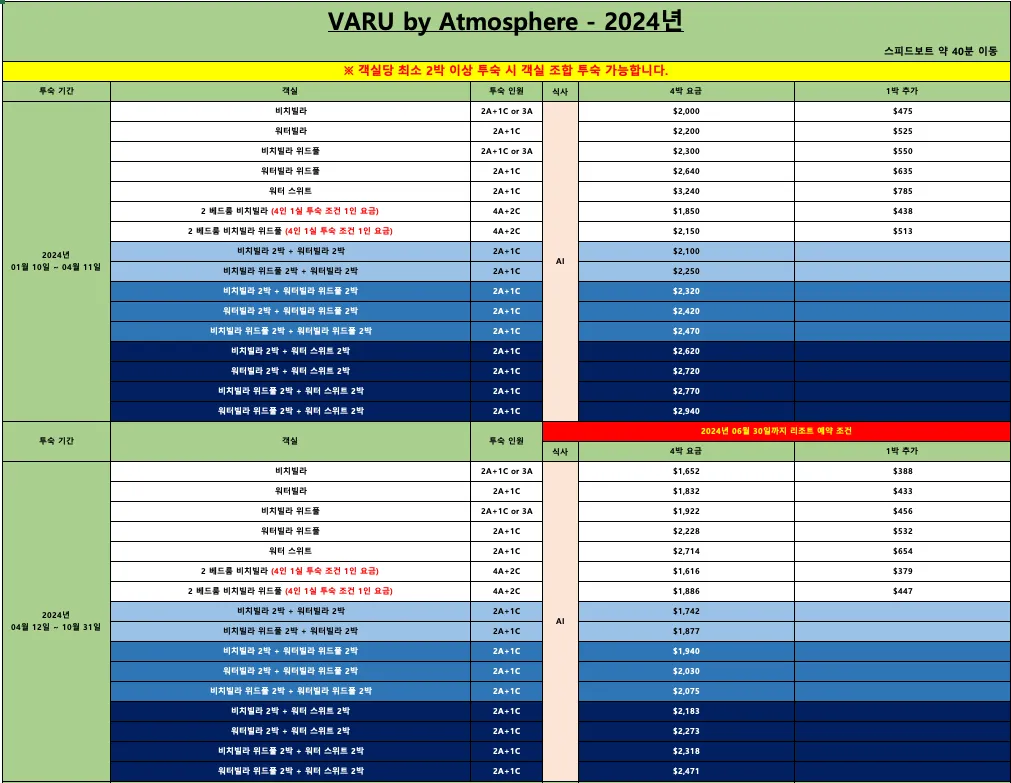 4박 이상 투숙 시 선셋 크루즈 또는 스타 라이징 크루즈 중 진행 가능한 익스커션 1회 제공